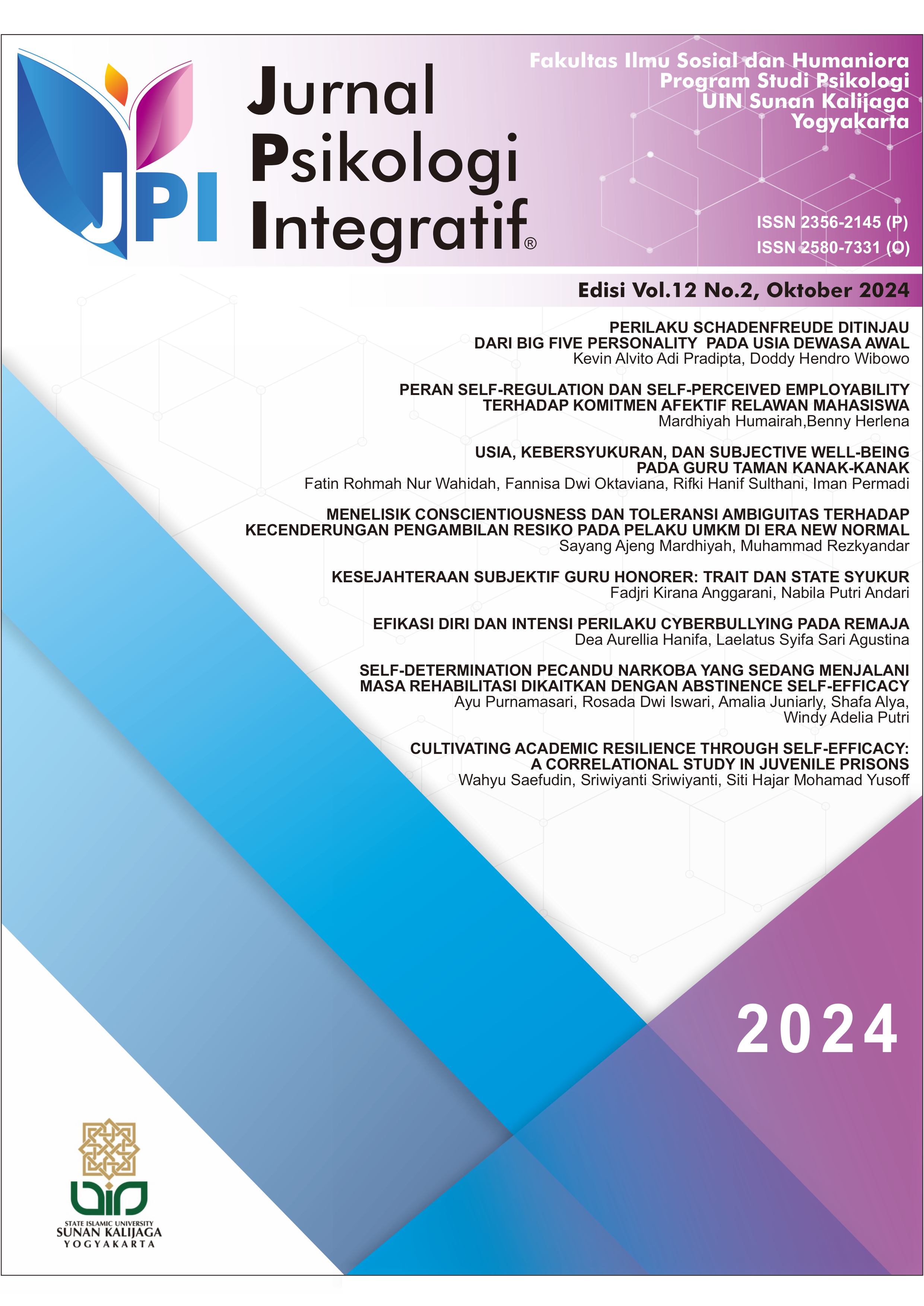 Jurnal Psikologi Integratif ISSN: 2580-7331 (online) | 2356-2145 (print) Marsda Adisucipto Street No. 1 Yogyakarta 55281 Indonesia |