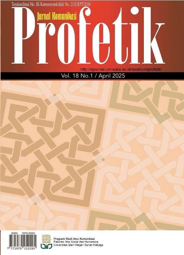 Profetik: Jurnal Komunikasi is an peer-reviewed journal that publishes high-quality research in communication and media studies with a distinctive focus on Media Studies and Prophetic Communication. The journal promotes scholarly works that explore how communication practices are guided by reason, ethical values, and Islamic principles within contemporary media environments.