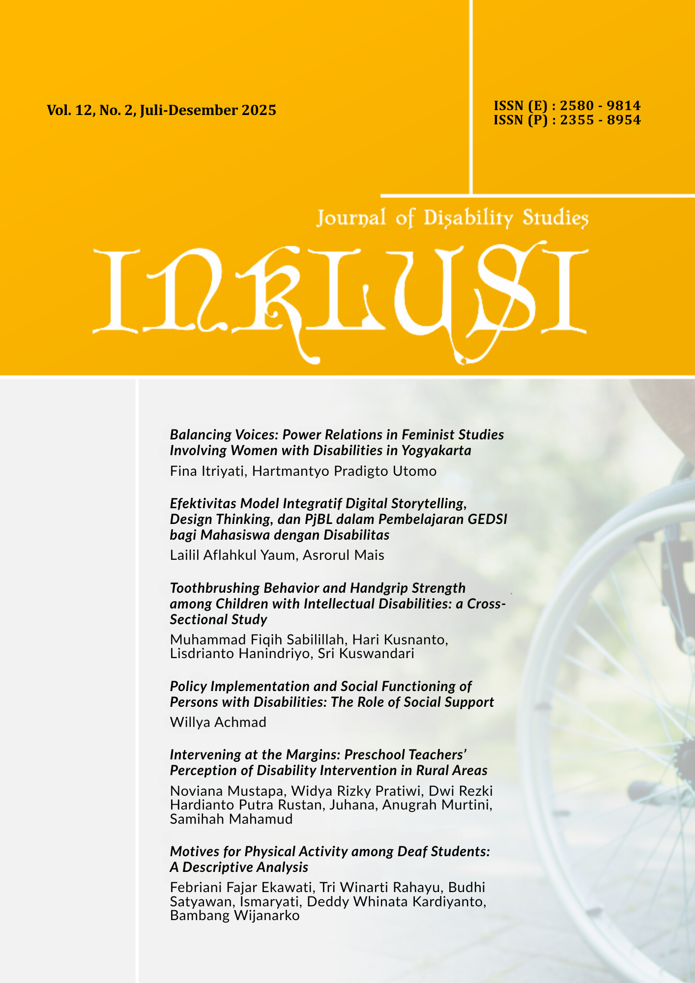Sabilillah, Kusnanto, H., Hanindriyo, L., & & Kuswandari, S. (2025). Effect of oral health education model on tooth brushing behavior and oral hygiene among children with intellectual disabilities. Brazilian Dental Science, 28(1), 1–12.
