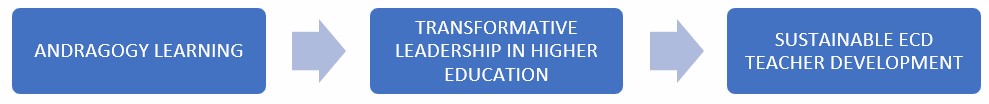 This discussion is grounded in a framework that integrates principles from adult learning, and transformative and sustainable theories. This framework supports a process of ECD teacher development rooted in lifelong learning and committed to sustainable practices. In other words, it facilitates convergence, which creates an environment where ECD teachers are uninterruptedly reinforced, permitted, and enthused to grow, guaranteeing sustainable and effective professional development. Combining adult learning values with transformative visionary and principled features of leadership grounded in sustainable ECD teacher development can generate a robust model for nurturing transformation, which is both impactful and enduring.