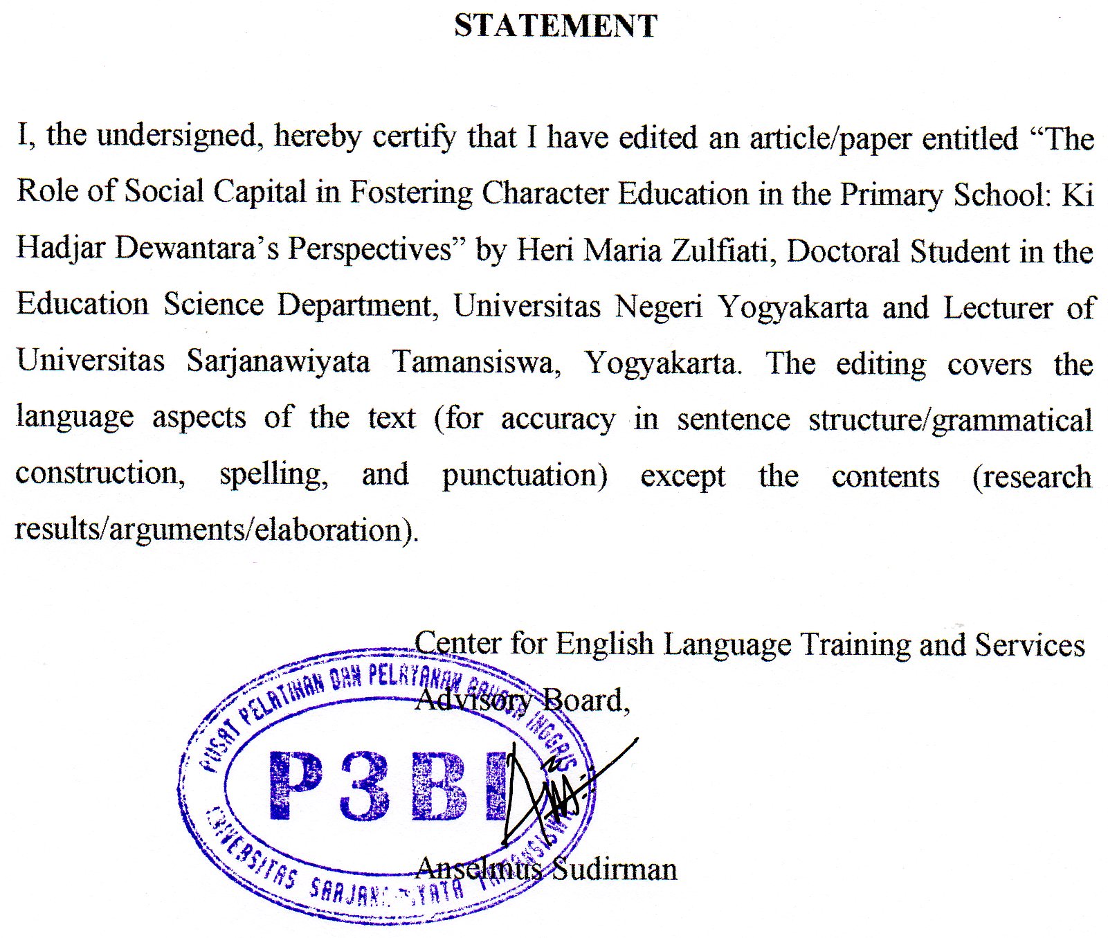 Kuntoro, Sodiq A. “Menapak Jejak Pendidikan Nasional Indonesia.” In Kearifan Sang Profesor : Bersuku-Bangsa Untuk Kenal-Mengenal, Sismono La Ode and M Rodhi As’ad (Eds.). Yogyakarta: UNY Press, 2016.