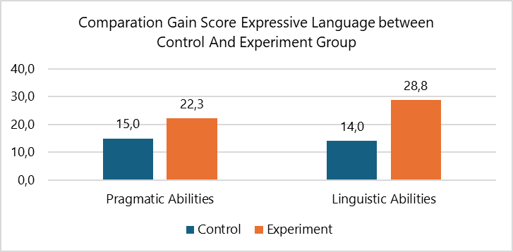 Based onFigure 2, it can be seen that there is an increase in the Expressive Language variable. This is because the experimental group was given the intervention of suggestopedia method using multisensory learning, so that the aspects of Pragmatic abilities and linguistic abilities on Expressive Language tend to increase significantly compared to the control group.