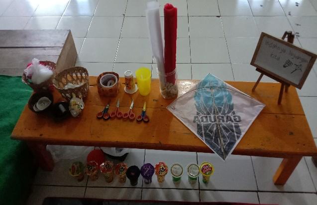 In the first observation, the educator was observed using physical science, specifically a kite, for the learning process. The educator stimulated the students to learn about the color, shape, texture, size, and movement of objects known as kites. In this activity, the children were encouraged to create kites with the inviting phrase "the beauty of our kites."
